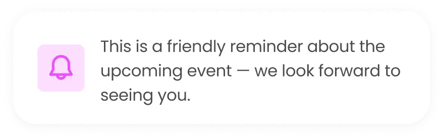 Automated reminders keep guests informed and reduce no-shows. Every reminder is sent based on real-time status—no manual chasing required.