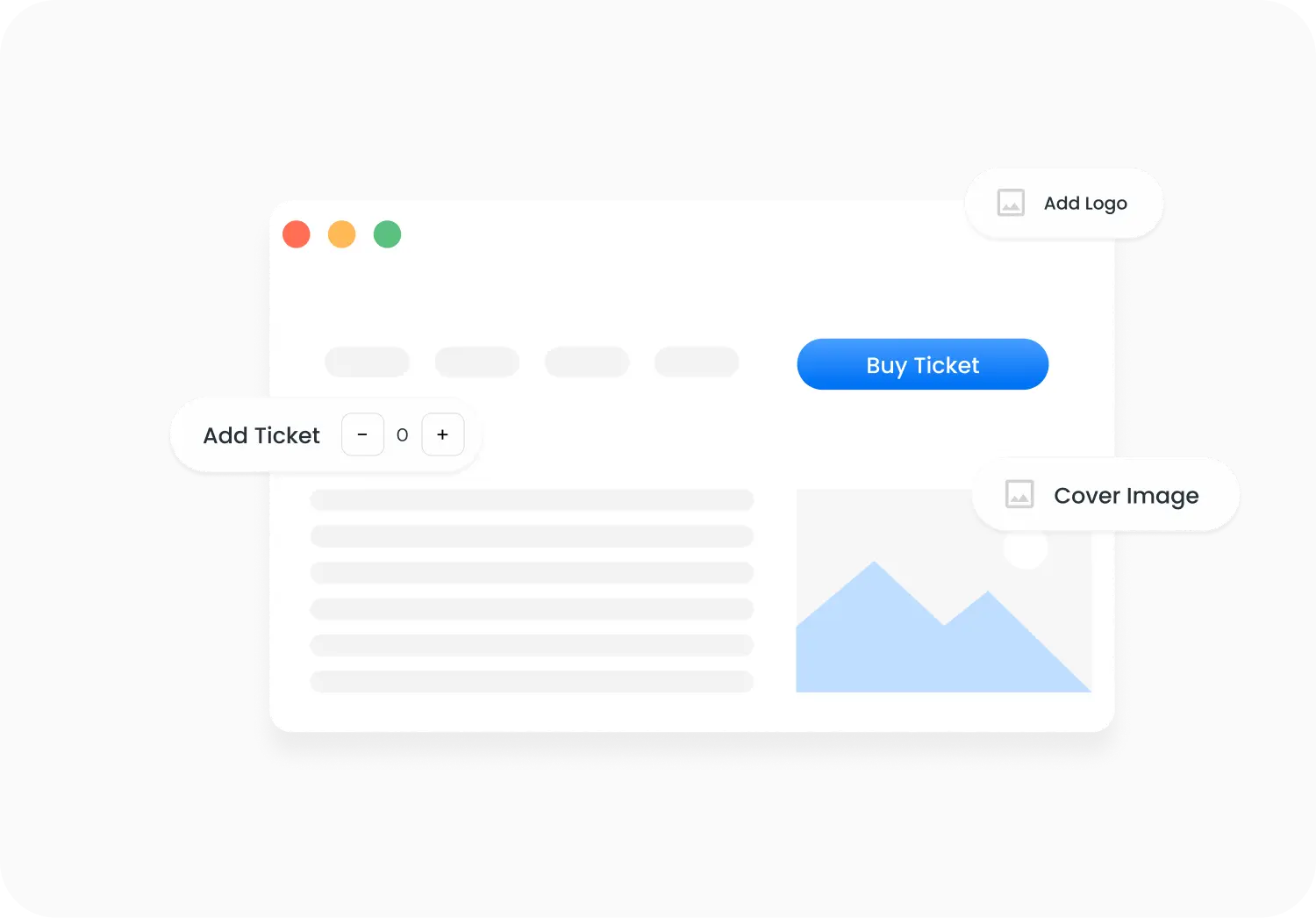 Add ticket name, description, price, available quantity, and maximum tickets per guest. Your page updates in real time — no coding needed.